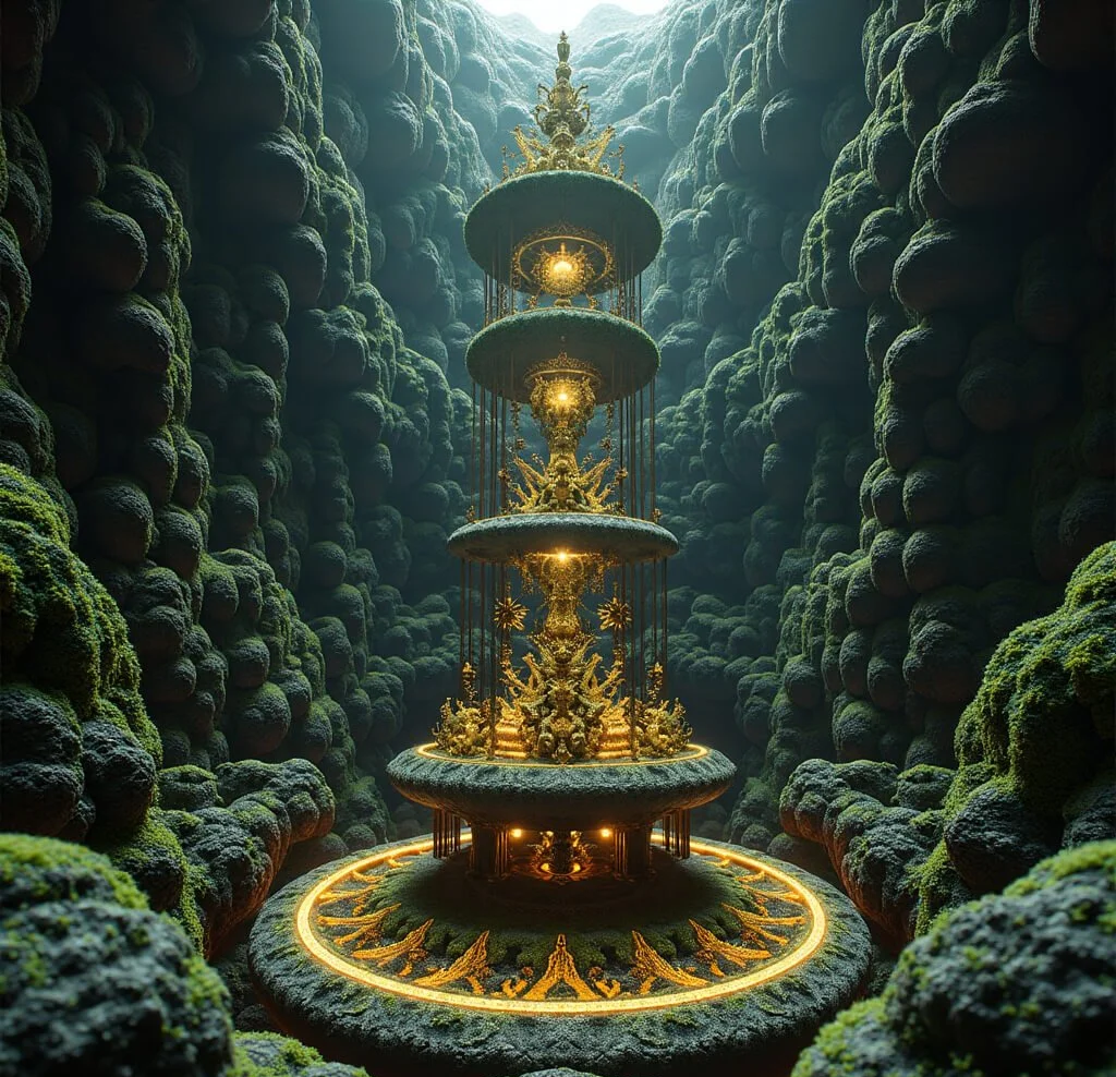 Her dwelling, he discovered, was not the simple hermitage he had expected, but rather a complex arrangement of caves and constructed spaces that seemed to grow from the mountain's own architecture.